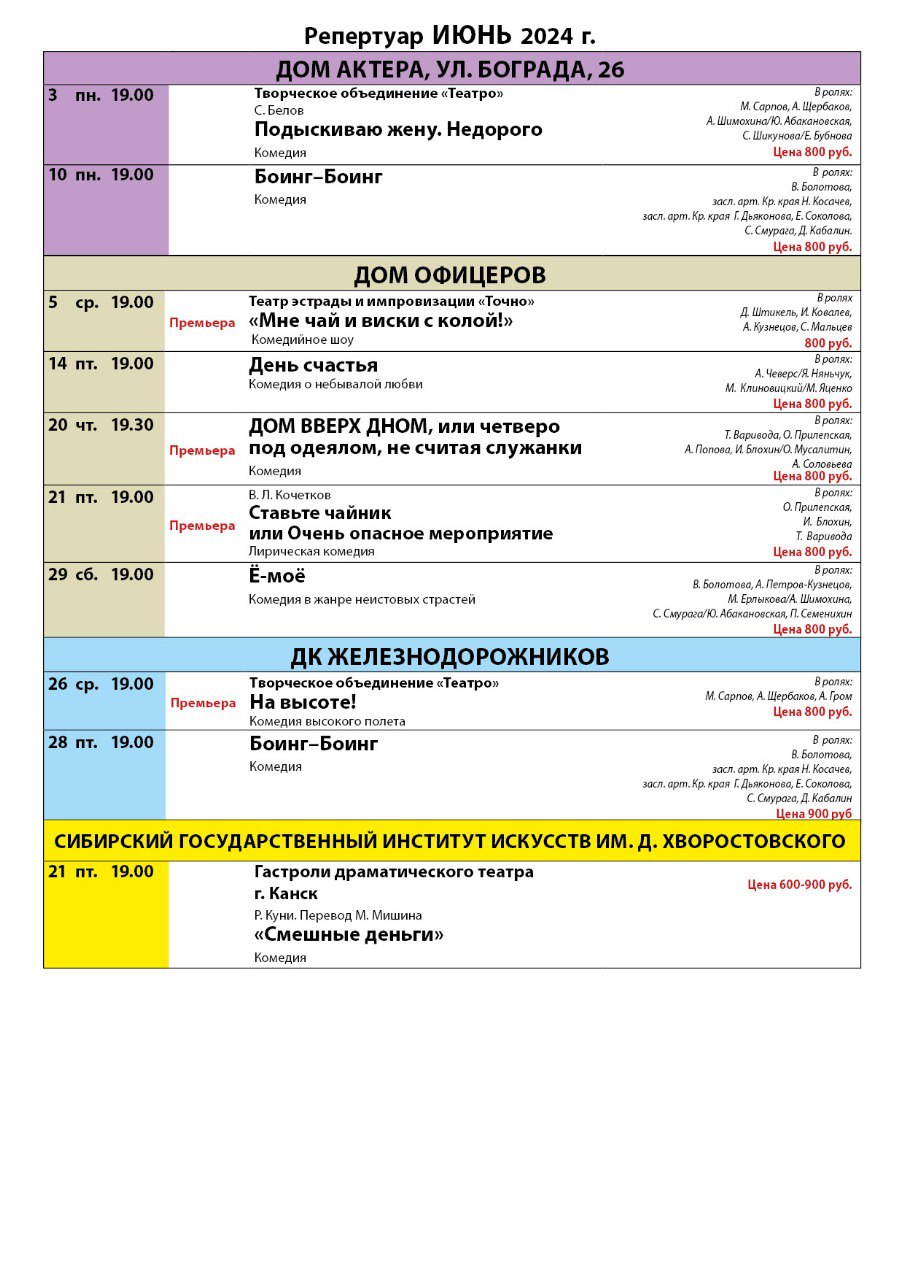 Завершение сезона, держите репертуары красноярских театров на июнь.