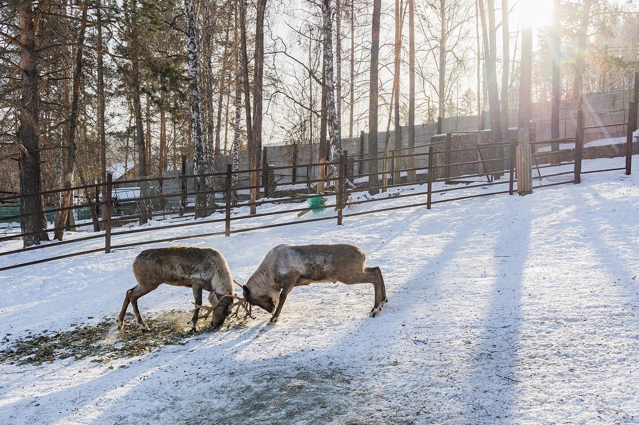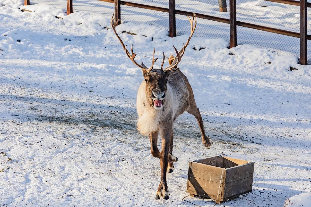 Северные олени в парке «Роев ручей» радуются весне.
