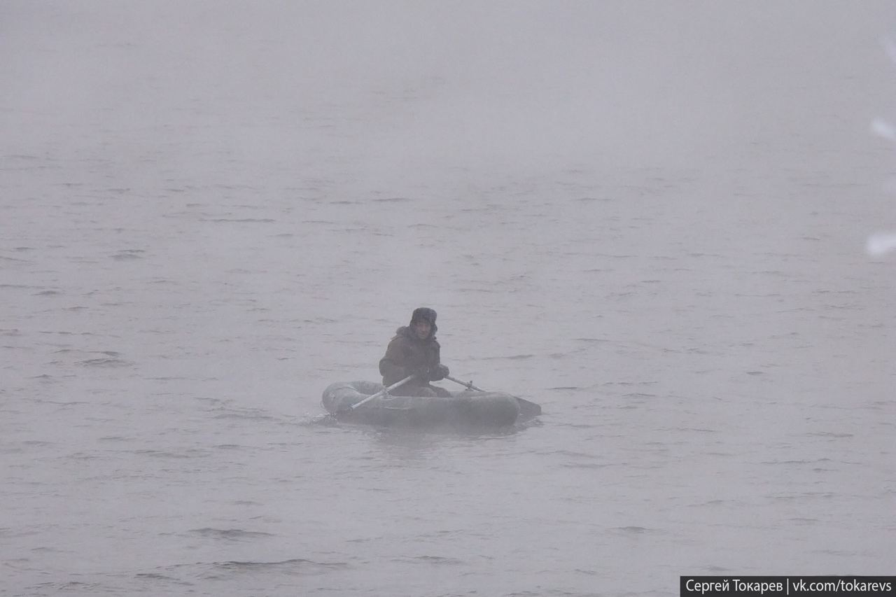 Но рыбаков холод не останавливает. Встретили одного на надувной лодке. Даже представлять не хочу, как там ему свежо".