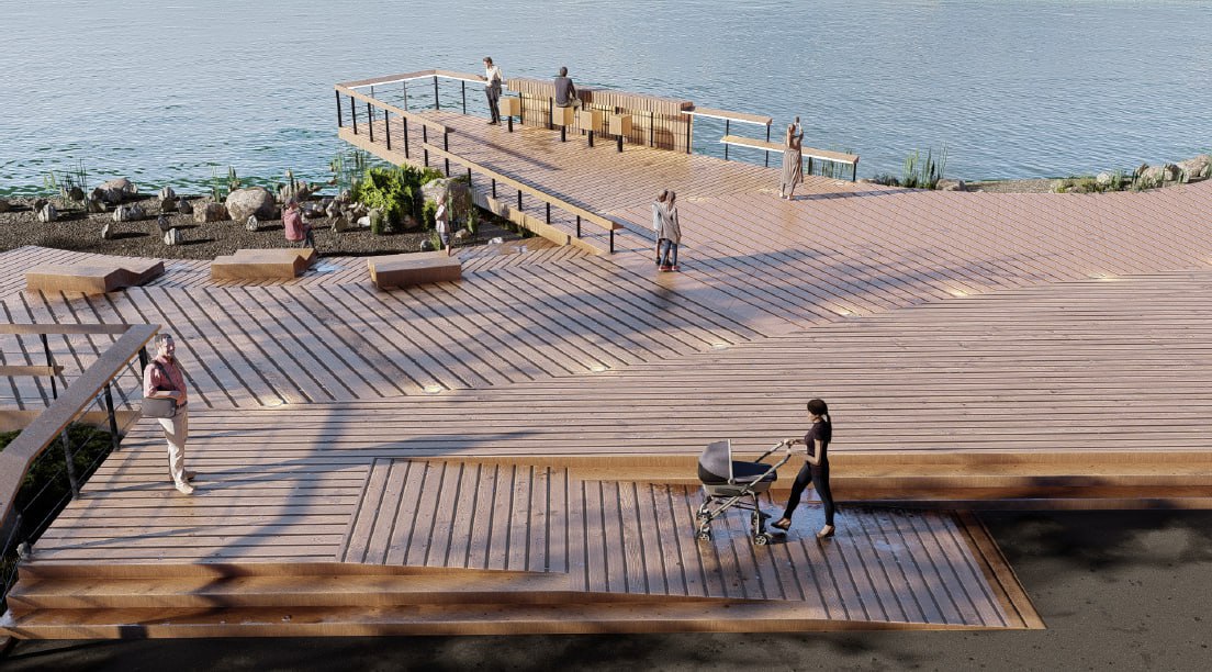 В планах на этот год: сцена с пандусом, смотровая площадка, качели, уличная мебель, пергола, модернизация парковки. Работы должны завершить до конца сентября.