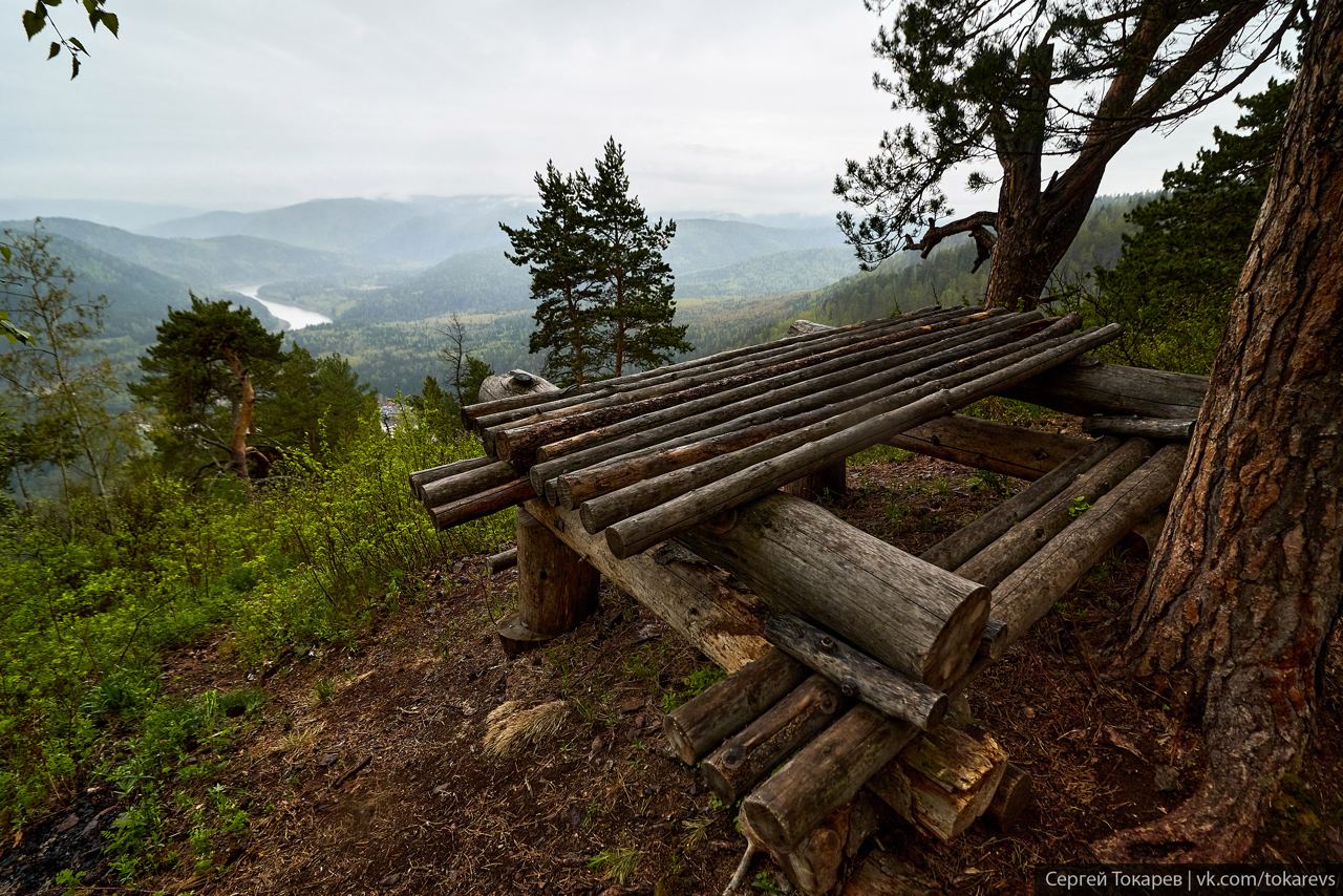 Отсюда открывается вид на Манский плюс, Енисей и в хорошую погоду даже край Красноярска видно.