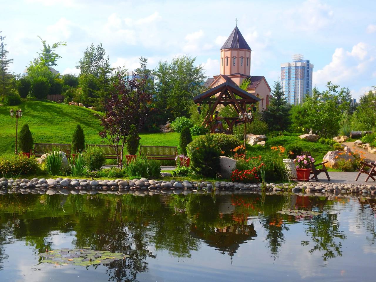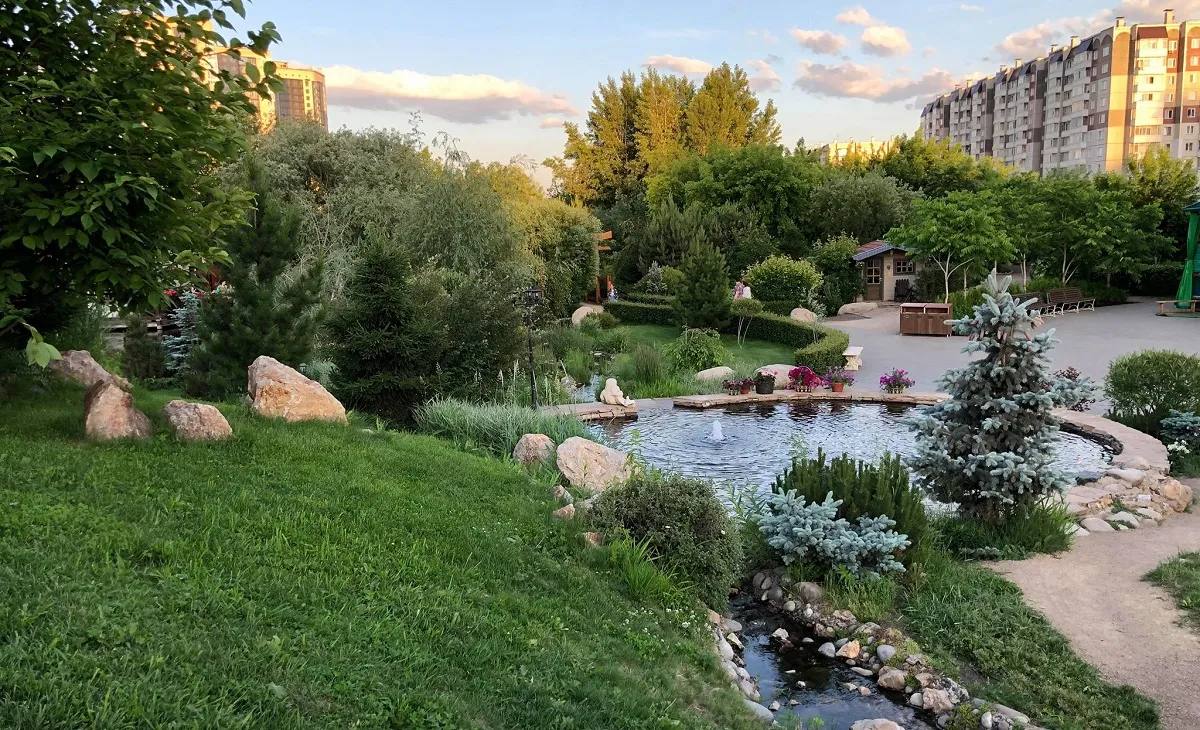 В ландшафтном парке, созданном дизайнером Денисом Сафоновым, на трёх гектарах произрастают 300 видов растений. Зоны продуманы и оригинально оформлены — есть уголки для тихого отдыха и уединения, спортивные площадки, аттракционы.