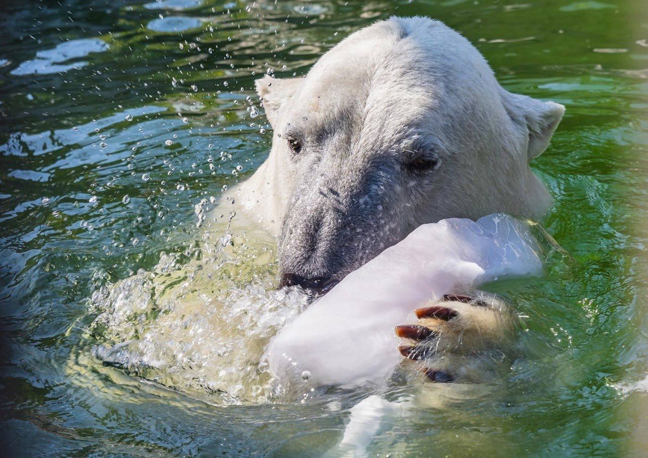 —«Белые медведи живут во льдах, и зимой мишку льдом не удивить. Другое дело — жарким летом. Такая холодная игрушка вызывает настоящий восторг, а для посетителей — целое шоу, на час-полтора, до тех пор, пока лед не растает»- поделились в зоопарке.