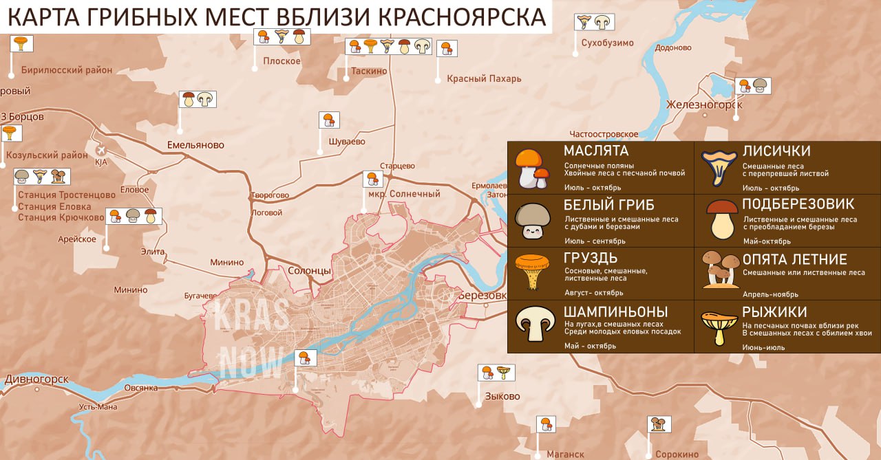 Где, когда и какие грибочки собирать вблизи Красноярска?