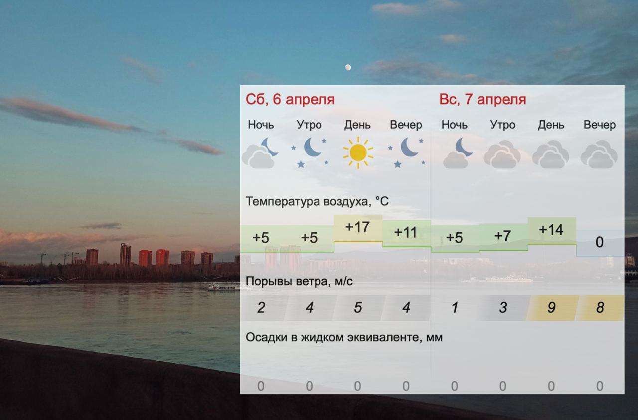 До +17: рассказываем о погоде в первые выходные апреля в Красноярске.